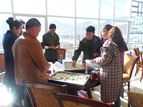 “我為大家包餃子”活動(dòng)名稱,正體現(xiàn)了十一局拉薩員工相互關(guān)心、相互照顧的融洽工作氛圍。員工輪流到食堂為大家包餃子,場面異常熱烈,其樂融融。等待熱騰騰餃子出爐的時(shí)間里,所有員工圍在大蛋糕前,為12月份過生日的同事送上祝福并獻(xiàn)唱生日歌。