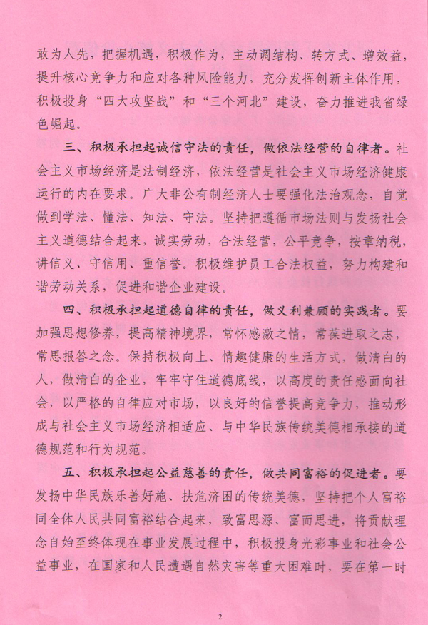 河北省工商聯踐行社會主義核心價值觀倡議書