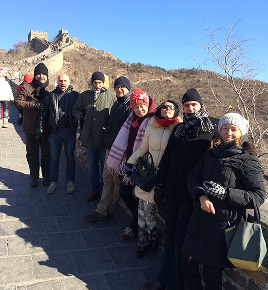 根據(jù)行程安排,意方攀登了的萬里長城。雖然寒風(fēng)凜冽,但登上長城后意方還是很開心也很震撼,驚嘆于長城的雄偉和美麗。