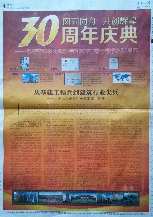 廊坊日報報道了中太建設集團軍轉工30周年大慶