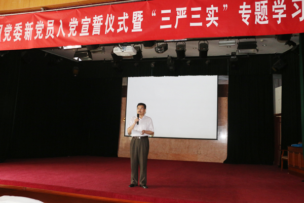 講座開(kāi)始前,集團(tuán)黨委副書記鐘崇鶴同志就本次黨員學(xué)習(xí)教育專題講座的意義進(jìn)行了闡述,并代表集團(tuán)黨委對(duì)新黨員提出了希望,就黨員管理人員如何“踐行‘三嚴(yán)三實(shí)’、打造高效團(tuán)隊(duì)”提出了要求。鐘崇鶴同志指出,新黨員是各級(jí)黨組織的新鮮血液,也是在黨的事業(yè)和中太各項(xiàng)工作中涌現(xiàn)出來(lái)的優(yōu)秀分子。在此,我代表集團(tuán)黨委向新黨員同志們提出五點(diǎn)希望和要求:一是希望新黨員要不斷增強(qiáng)入黨的光榮感和責(zé)任感,堅(jiān)定對(duì)黨的信念,要把為人民服務(wù)的宗旨牢記在心;二是要始終以黨員的標(biāo)準(zhǔn)規(guī)范嚴(yán)格要求自己,不但在組織上入黨,還要在思想上入黨,使自己真正成為合格的共產(chǎn)黨員;三是在工作崗位中,以身作則,率先垂范,起先鋒模范作用,具有高尚的職業(yè)道德,忠于職守,正確履行自己的崗位職責(zé);四是要不斷學(xué)習(xí),提升自己的履職能力和素質(zhì),只有不斷加強(qiáng)政治理論和業(yè)務(wù)知識(shí)的學(xué)習(xí),才能具有較高的政治理論素質(zhì)、堅(jiān)定正確的政治方向;五是嚴(yán)格要求自己,不斷提高自己保護(hù)和防范能力,從自我做起,從小事做起,在今后工作中,嚴(yán)守黨的紀(jì)律,更好的發(fā)揮黨員先鋒模范作用。