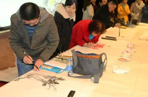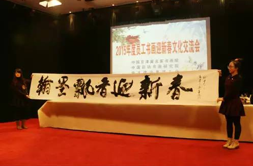 “翰墨飄香迎新春”!12月25日上午,由中國京津冀名家書畫院、中國啟功書畫研究院和中太建設集團工會聯合舉辦的“2015年度員工書畫迎新春文化交流會”活動在中太大廈二樓報告廳圓滿落幕。來自京津冀地區的十余名書畫名家與企業員工歡聚一堂,以中國傳統書畫藝術的形式共迎新年的來臨。書畫藝術家現場揮墨創作,并將作品贈與中太員工,場面和諧歡暢。