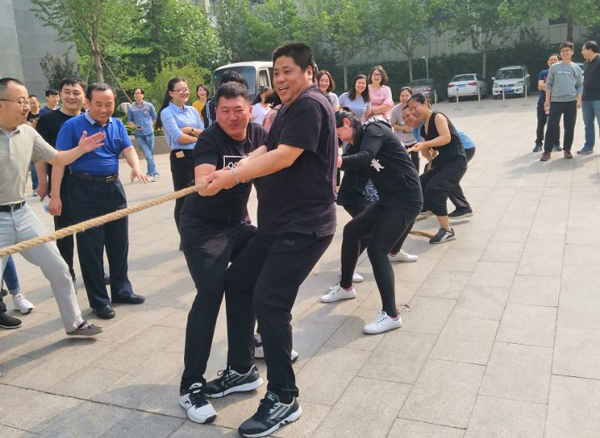 本次趣味運動會分為團體賽和個人賽。團體賽包含拔河、單足跳接力、風采一條龍、坦克大戰和業績翻番五項比賽;個人賽包含踢毽子、跳繩、摸石頭過河、青蛙跳水和夾玻璃球五項比賽。參加團體賽和個人賽的選手,均要按順序完成五項比賽,最終累加得分獲得比賽名次。經過激烈的角逐,建設集團第三代表隊榮獲團體比賽第一名;建設集團唐磊磊在個人競技賽中脫穎而出獲得冠軍,建設集團黃雪獲得第二名,房產集團張倩倩、建設集團張超并列第三名。