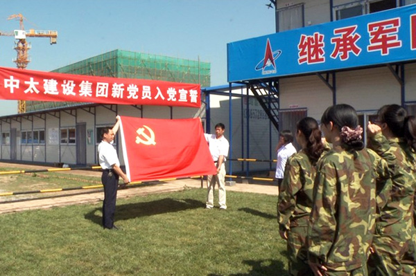 7月3日上午9點,中太建設(shè)集團(tuán)黨委在安瑞科項目工地舉行新黨員入黨宣誓儀式。在鮮紅的中國共產(chǎn)黨黨旗面前, 16名新黨員整齊排列成行,舉起右手,握拳過肩,莊嚴(yán)宣誓,表達(dá)了為共產(chǎn)主義事業(yè)奮斗終身的決心。集團(tuán)黨委副書記鐘崇鶴參加宣誓儀式并講話。他代表集團(tuán)黨委向全體新黨員表示祝賀,并提出了明確的要求和希望。他希望新黨員同志們不要辜負(fù)黨組織的期望,牢記入黨誓言,牢記全心全意為人民服務(wù)的宗旨,發(fā)揚(yáng)黨的優(yōu)良傳統(tǒng)和作風(fēng),在“創(chuàng)先爭優(yōu)”活動中,在各自的工作崗位上,熱愛本職、學(xué)習(xí)本領(lǐng),努力工作,發(fā)揮好黨員的先鋒模范帶頭作用,為黨的事業(yè)和中太的發(fā)展做出自己新的、更大的貢獻(xiàn),以更加優(yōu)異的成績,喜迎黨的十八大的勝利召開,無愧于共產(chǎn)黨員的光榮稱號!
