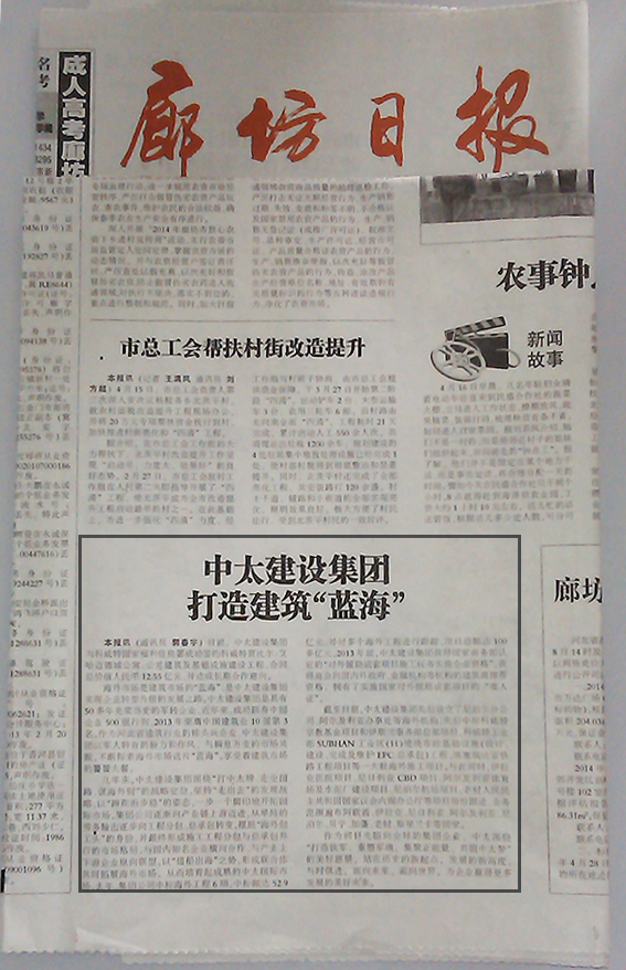 廊坊日報報道了中太建設(shè)集團打造建筑“藍海”